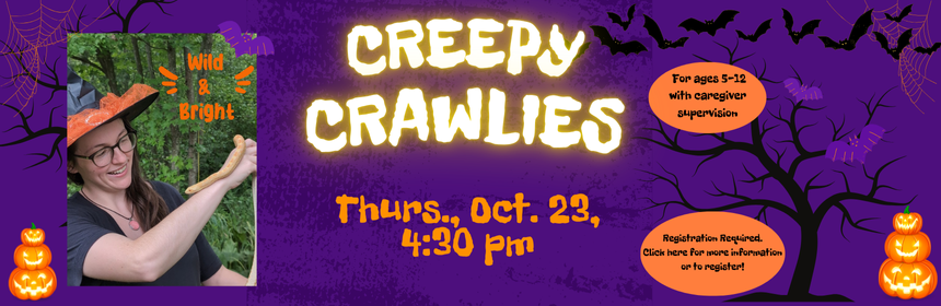 Halloween is the perfect time to experience animals that are often thought of as “creepy crawlies”! Join reptile educator Maureen of Wild & Bright for an exciting and engaging animal program! Get an up-close look at real, live reptiles and reptile skeletons! Recommended for ages 5+. Children must be supervised by a caretaker during this event. Any siblings present under the age of 4 should be seated with the caretaker. Please speak to all children in advance about polite audience behavior during an educational program.